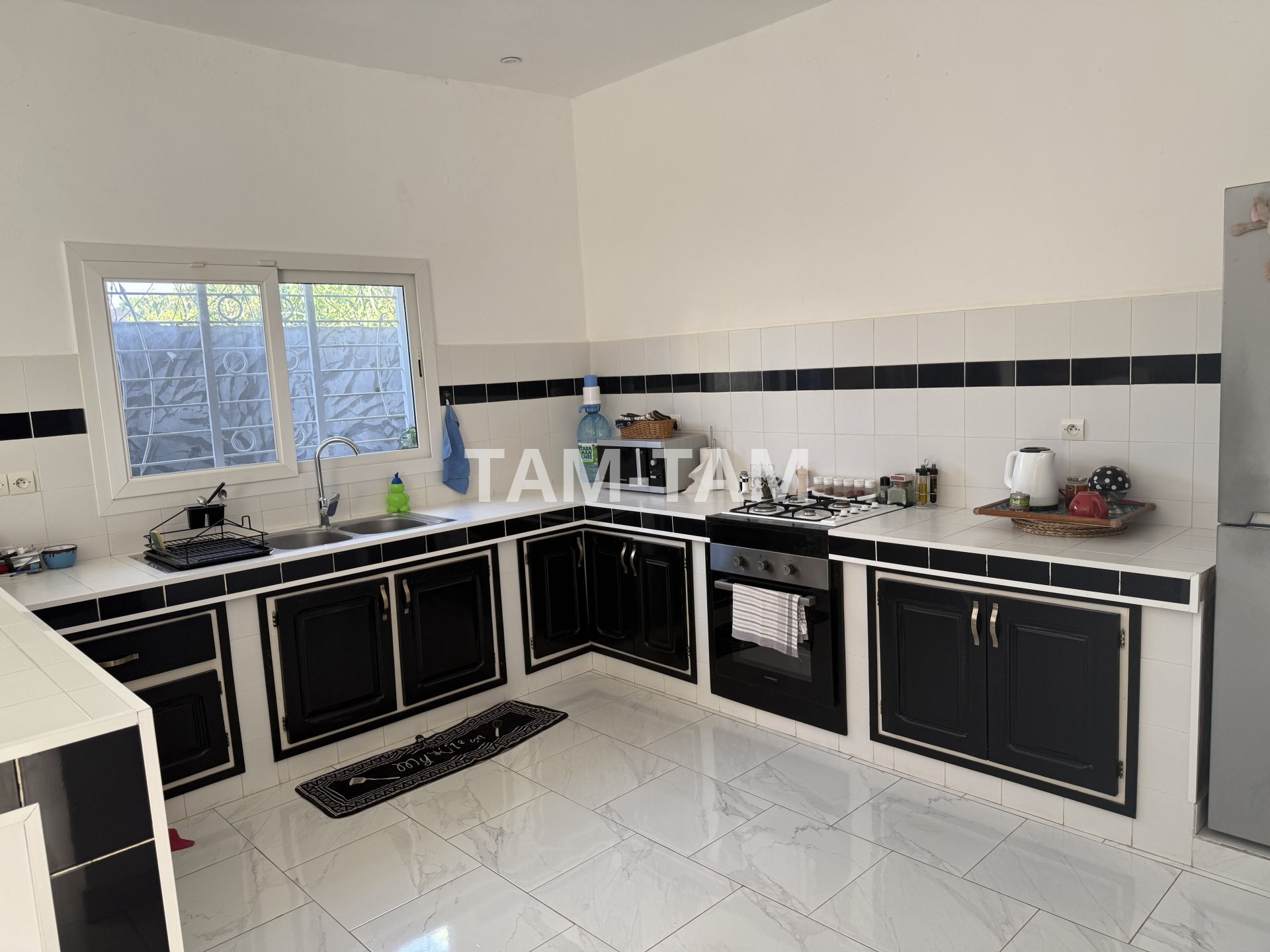 Un vaste séjour lumineux avec une cuisine américaine aménagée et équipée, parfaite pour des moments de vie en famille.