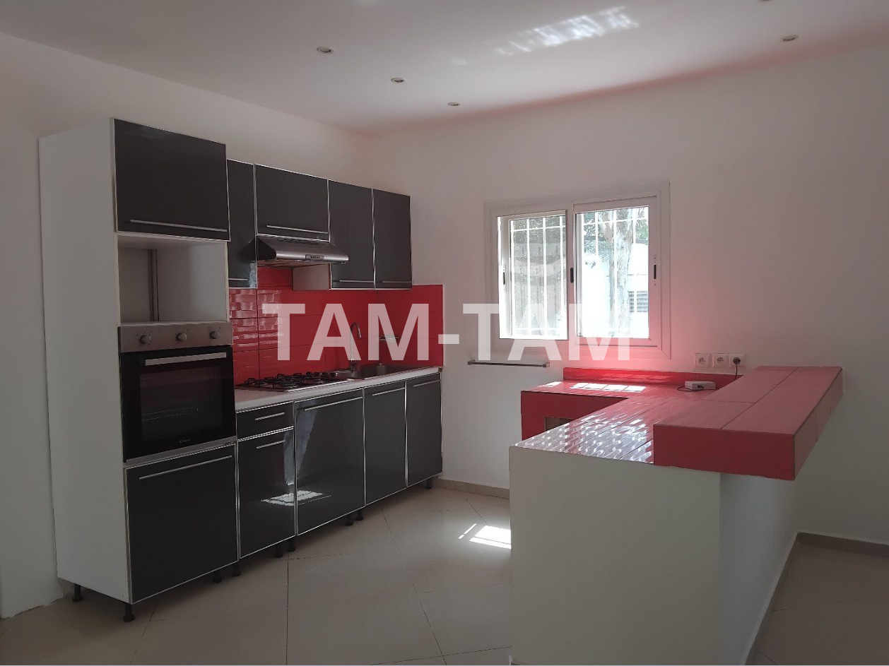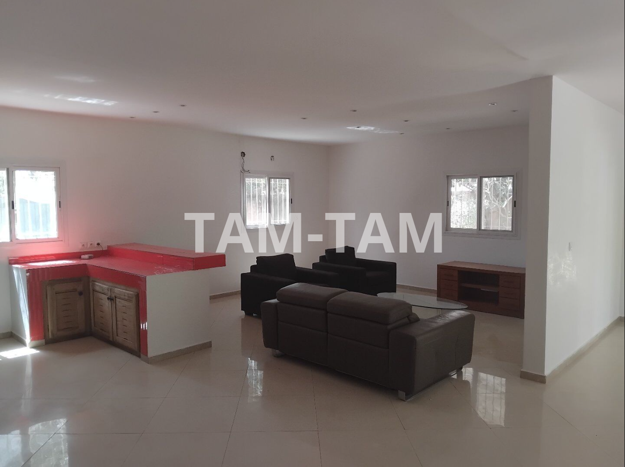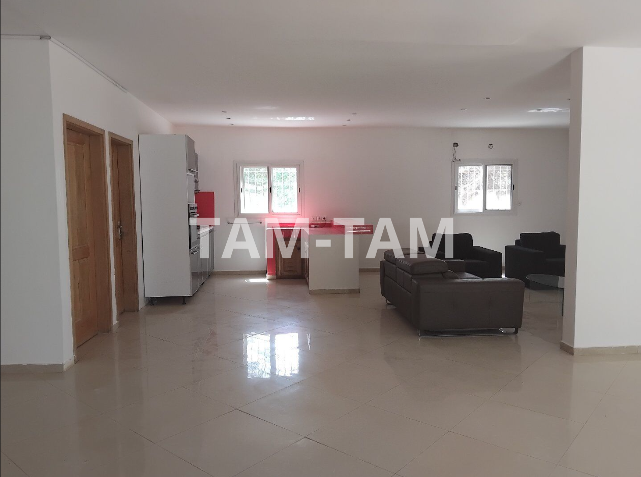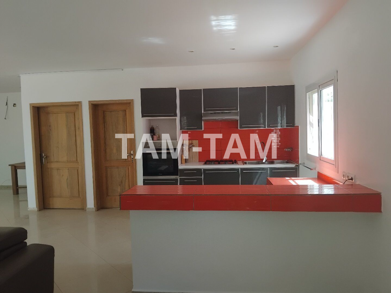 La villa s'articule autour d'un vaste séjour traversant, baigné de lumière, comprenant salon et salle à manger avec cuisine américaine aménagée, une arrière cuisine et un hall d'entrée.