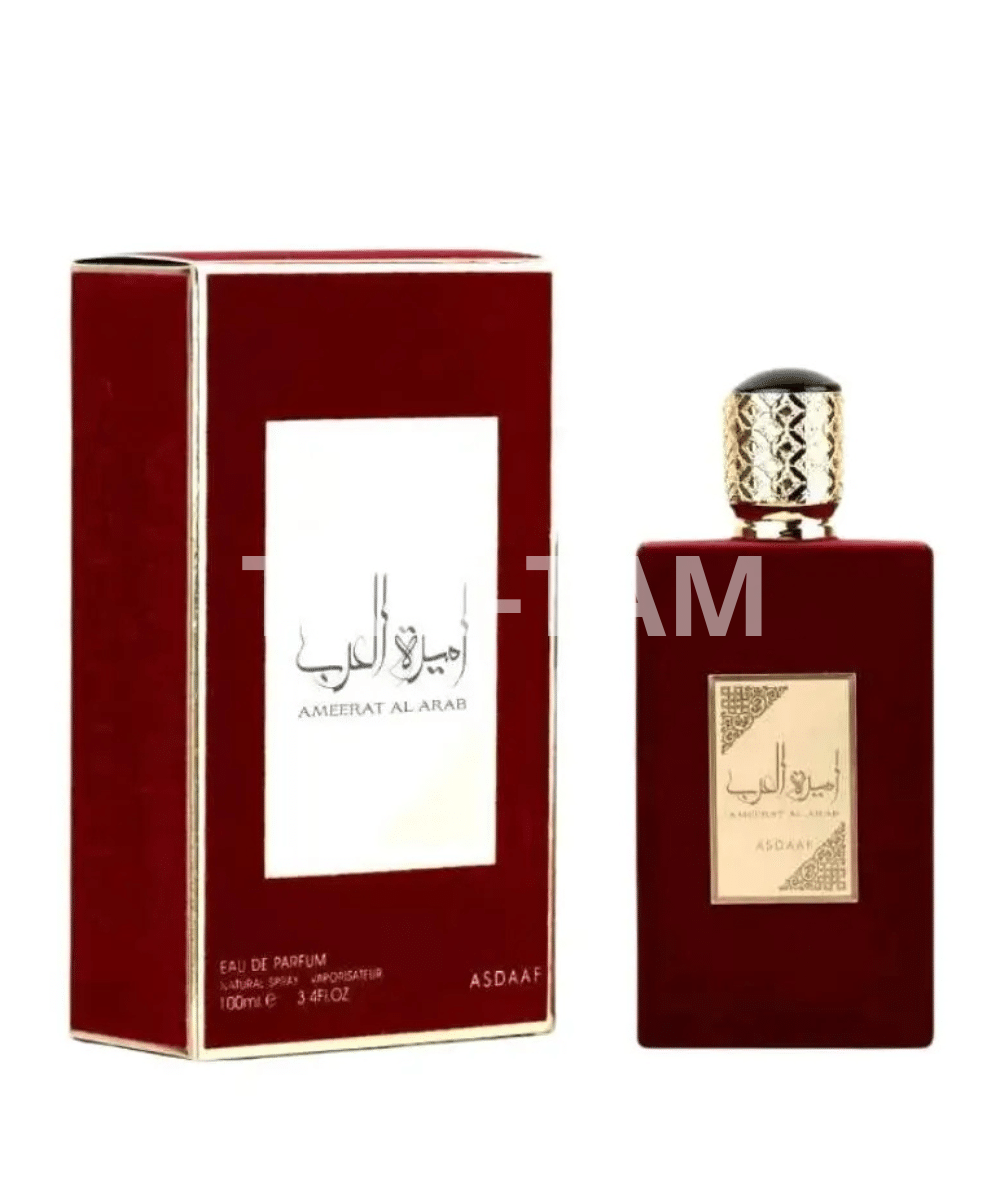 Emeerat Al Arab est une eau de parfum féminine orientale, lancée en 2022, célèbre pour ses notes florales et boisées. Ce parfum évoque le raffinement des palais arabes avec un mélange de musc, d'agrumes, de jasmin et de oud, présenté dans un flacon élégant en velours rouge, parfait pour une touche de sensualité.