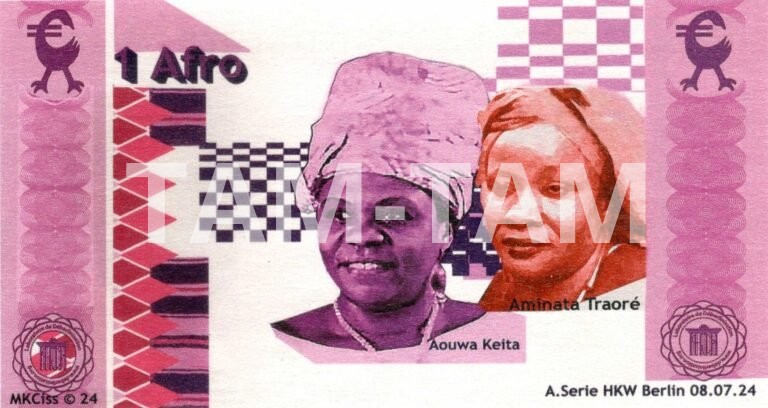 Mansour Ciss a étudié de 1973 à 1977 à l’Institut National des Arts du Sénégal. À Dakar, il sculpte le bois, de grandes sculptures aux formes cubistes, dont certaines ont fait partie de la collection du président Senghor. Depuis 1993, il vit à Berlin. C’est dans la capitale allemande que son travail prend une tournure plus engagée et plus politique. C’est en effet dans cette ville que s’est tenue la conférence de Berlin, lors de laquelle les puissances coloniales se sont partagées l’Afrique en 1884-1885. En 2000, Mansour Ciss crée le Laboratoire de déberlinisation avec Baruch Gottlieb puis avec Christian Hanussek. Il s’agit d’un laboratoire d’idées, une sorte de plateforme artistique pour repenser l’histoire coloniale et le continent africain. Concrètement, Mansour Ciss Kanakassy a choisi un support original pour dessiner l’Afrique de demain : il a crée une monnaie – l’afro – la monnaie unique africaine. Une monnaie imaginaire, symbole de l’unification des pays africains.