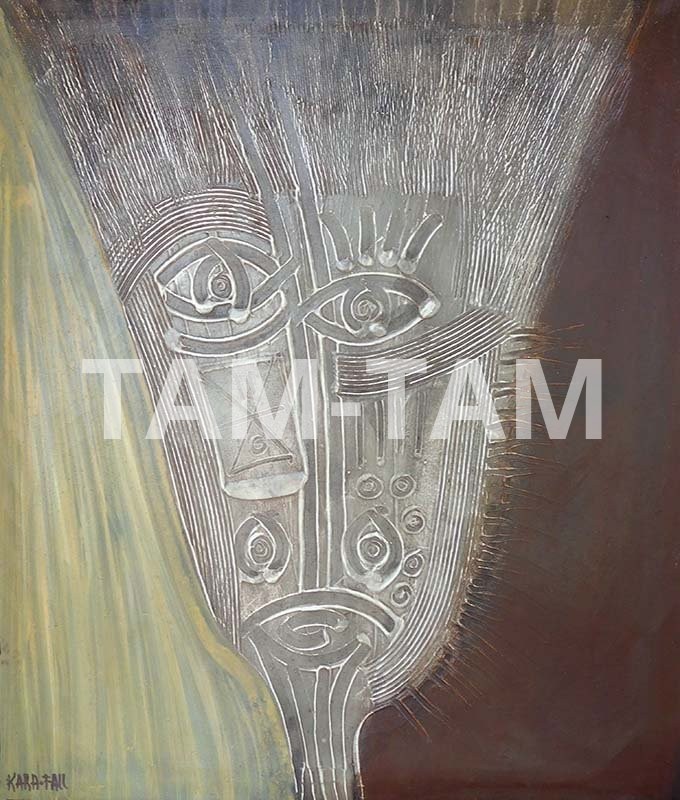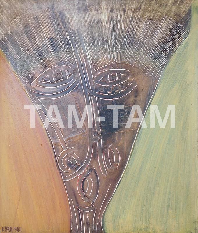 Nourri par l’héritage spirituel et esthétique de la culture dogon, Kara Fall développe une œuvre empreinte de symboles, de métaphores et de mythes revisités. Ses compositions, souvent éclatées, superposent textures, signes et silhouettes, dans un langage plastique qui évoque autant la mémoire collective que les interrogations contemporaines.