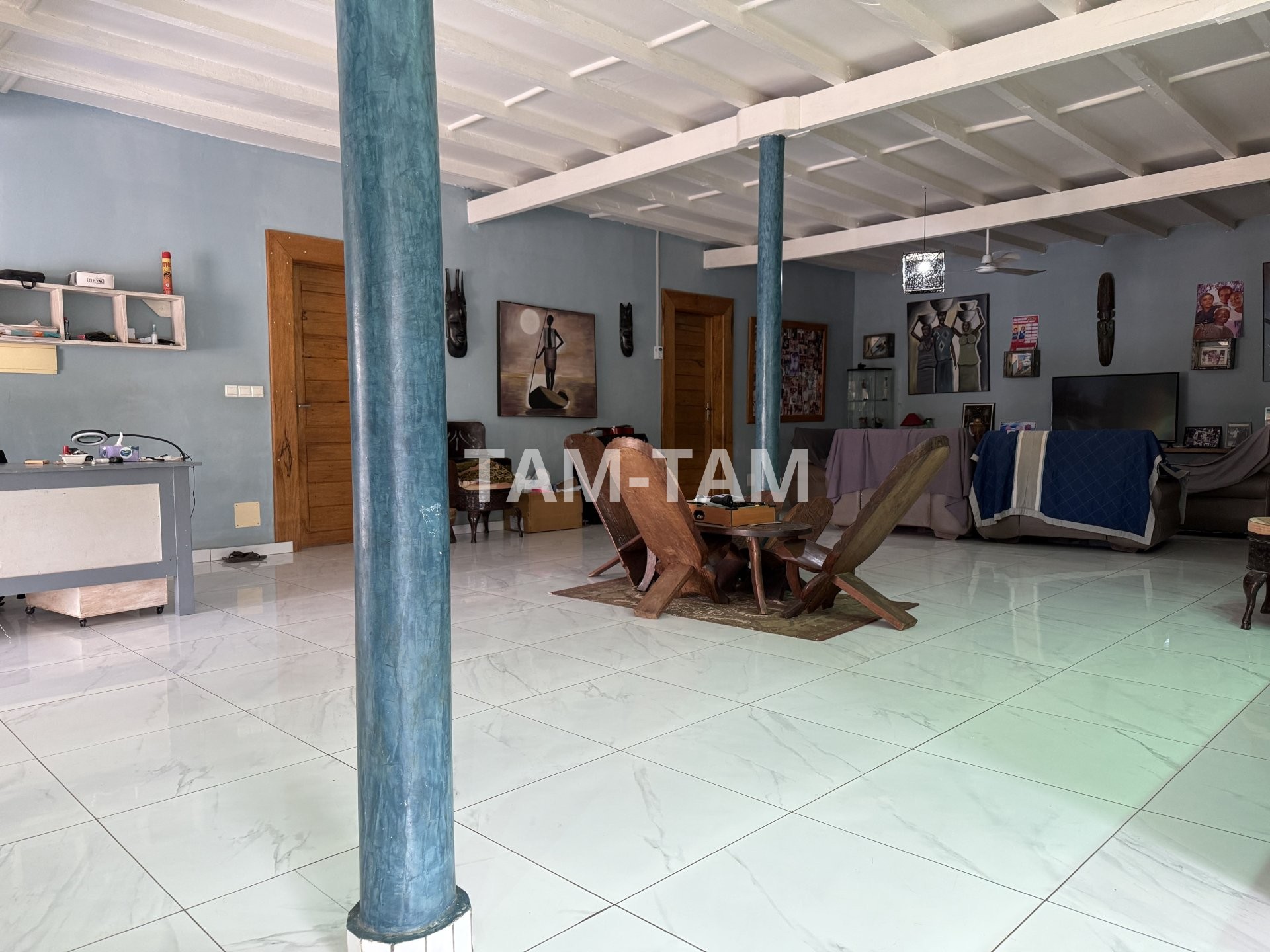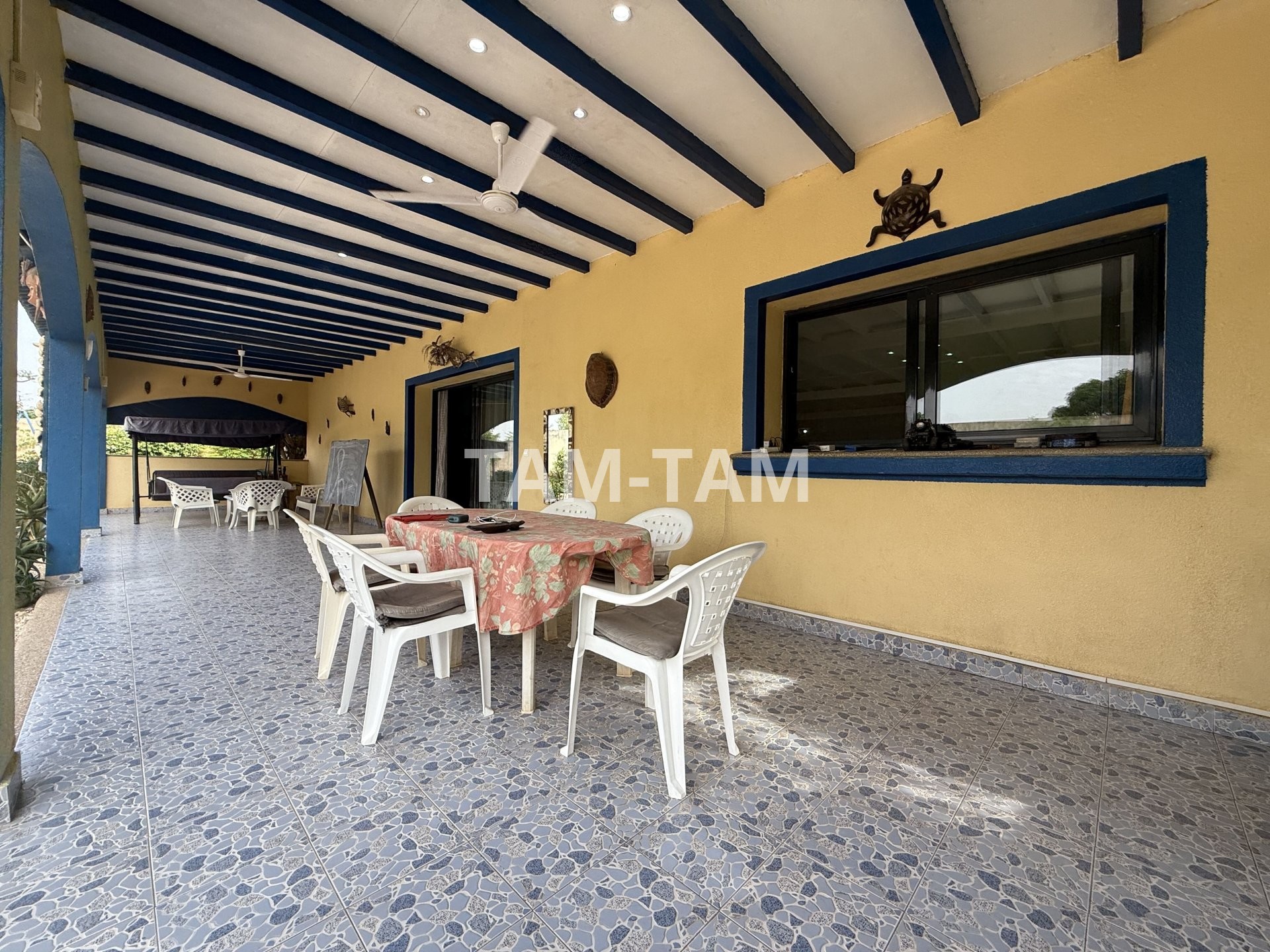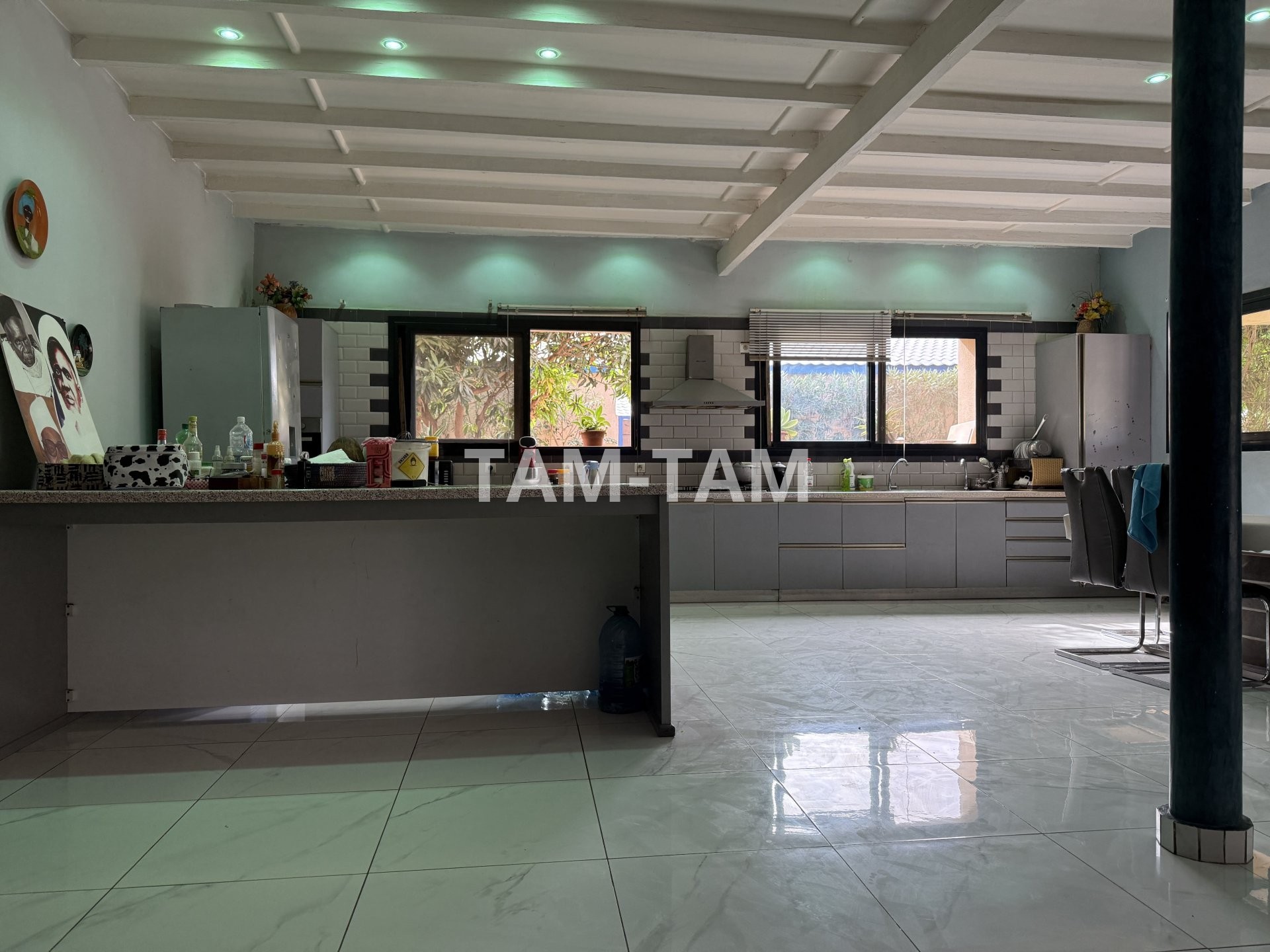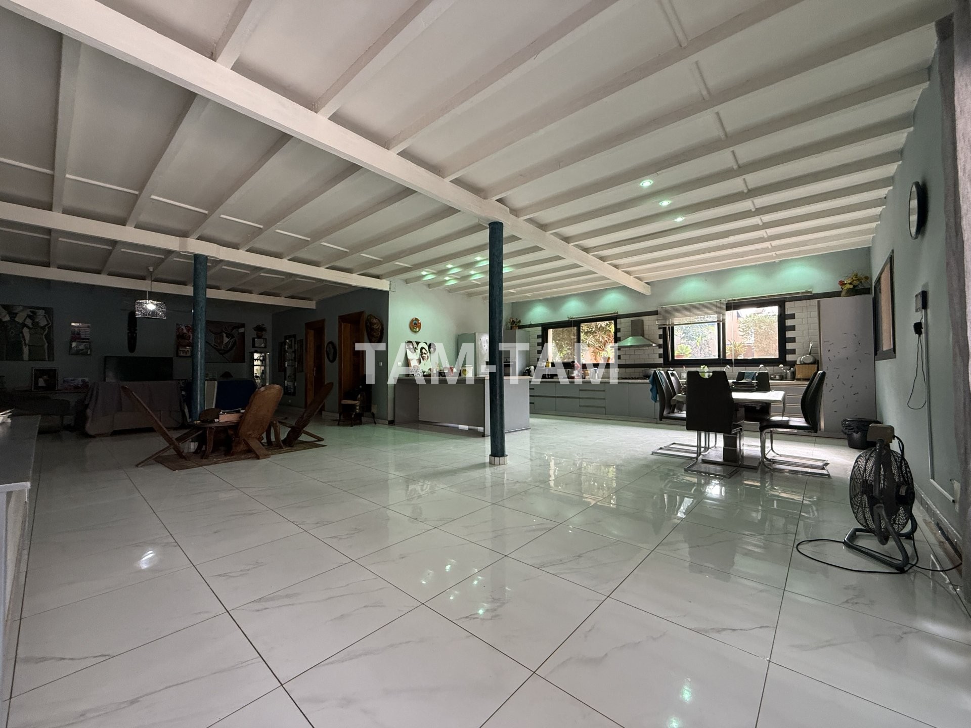 La villa principale de plain-pied comprend un grand séjour avec une cuisine américaine aménagée et équipée, trois chambres, deux salles d'eau avec wc ,et une immense terrasse couverte.