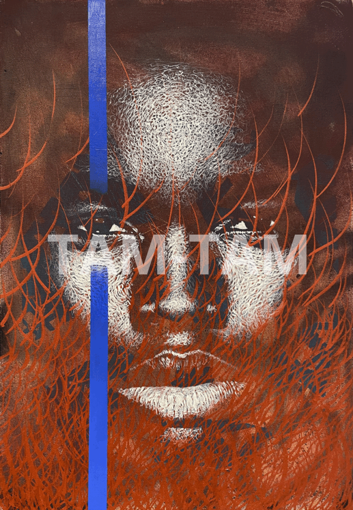 Sa série Afro-Remix en est l’expression la plus aboutie. Chaque portrait, traité avec une grande finesse, se distingue par un jeu subtil d’ombres et de lumières appliquées en petites touches de pinceau, donnant à chaque visage une profondeur presque photographique. Ces figures, empreintes de calme ou de détermination, sont superposées à des arrière-plans vibrants, saturés de motifs inspirés du wax africain, de l’imagerie pop-art ou encore de symboles graphiques empruntés à la culture urbaine.