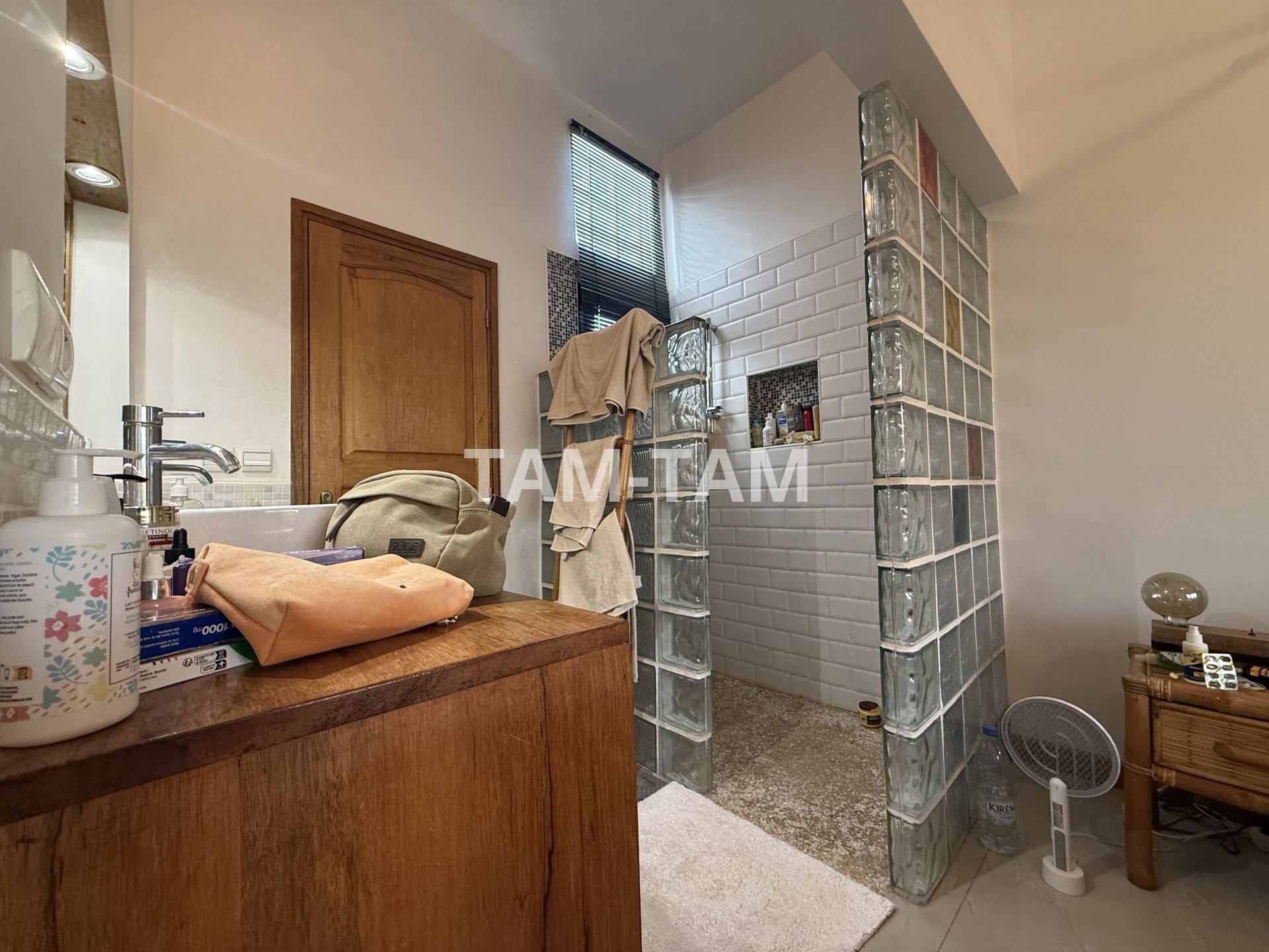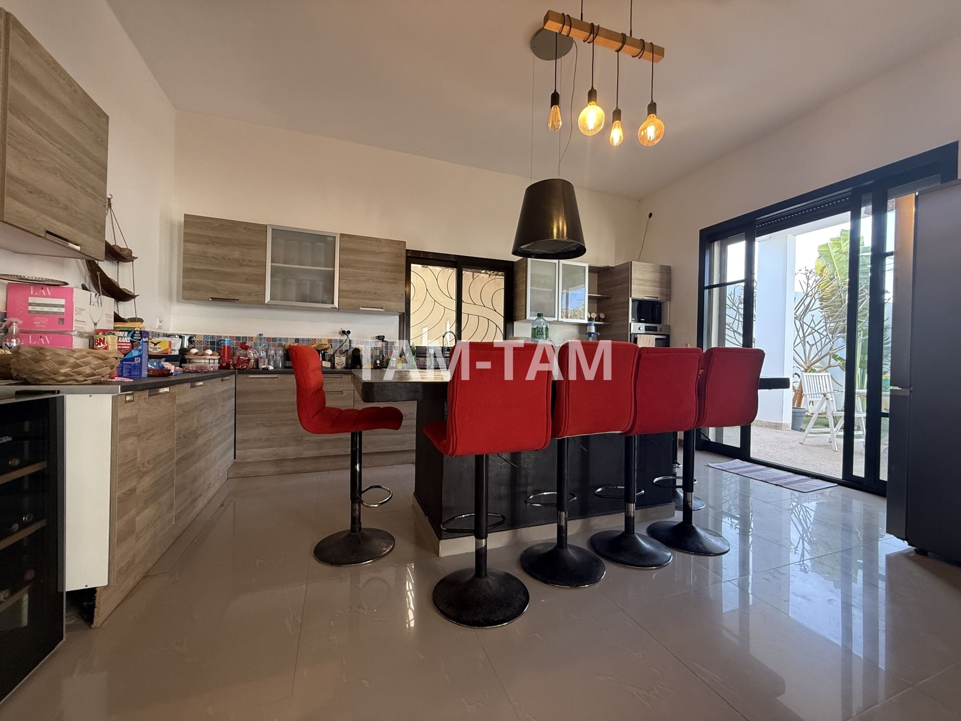La villa, construite sur un terrain de 700 m², est meublée avec goût et offre de beaux volumes.