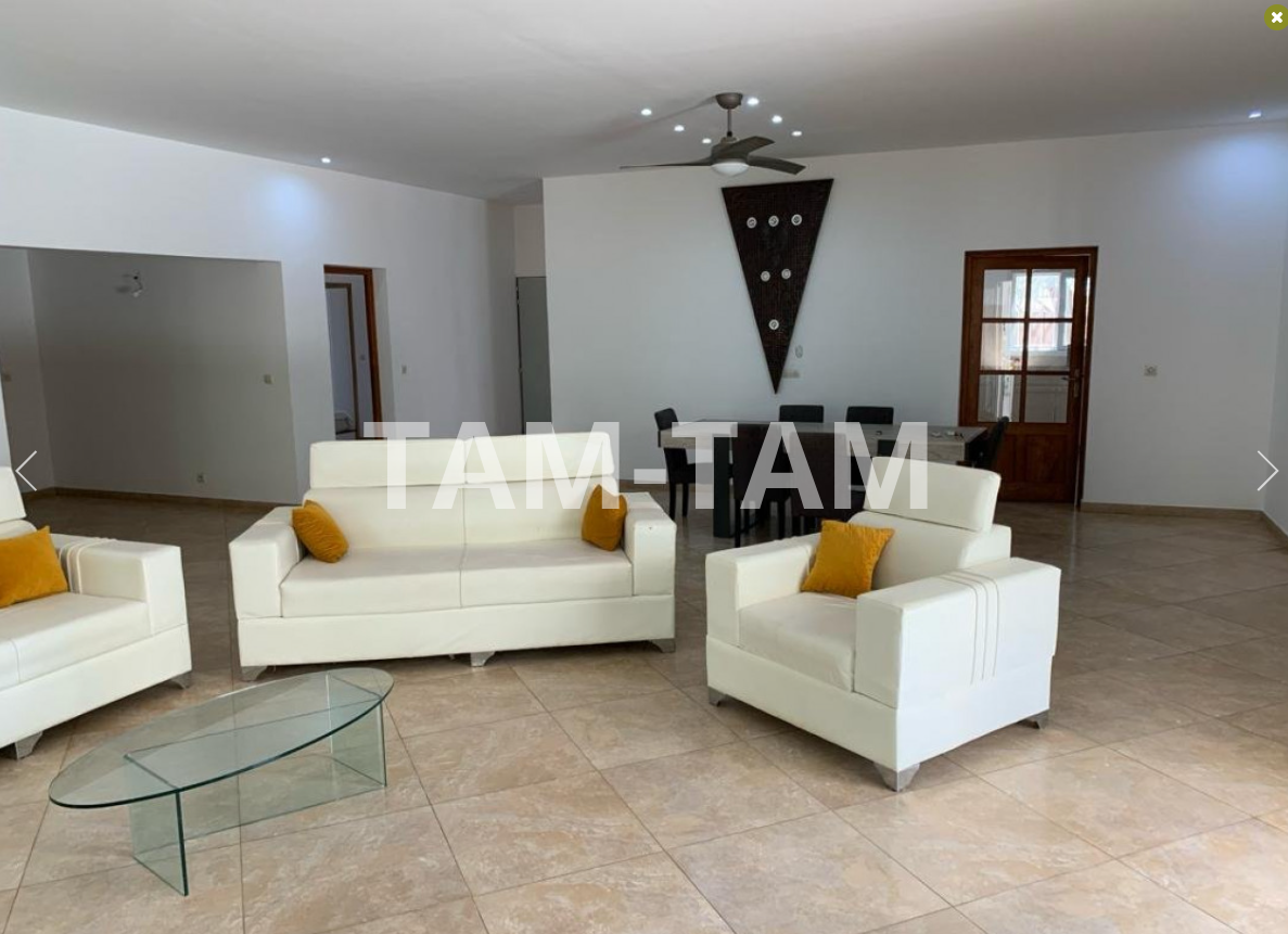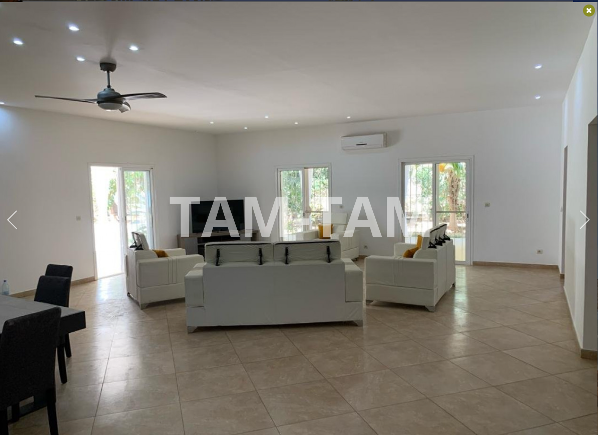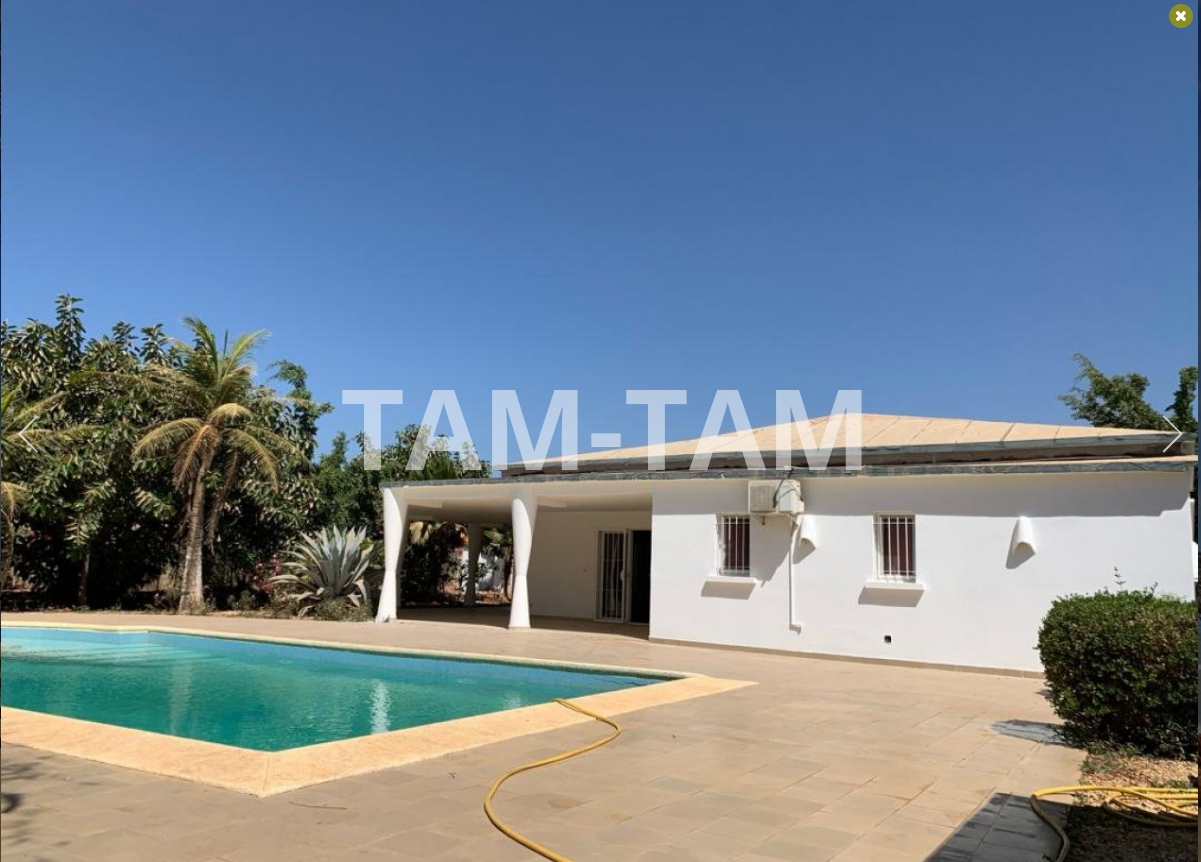 SELECTION SENEGAL vous propose à louer cette villa meublée située au calme, dans un secteur sécurisé, villa de plain pied avec piscine et terrasse couverte. Composée d'un grand séjour lumineux ouvrant sur la terrasse, cuisine aménagée, 3 chambres en suite avec placards de rangement. Arrière cuisine avec lave linge. WC visiteurs. Chambre pour le personnel. Piscine 12 X 6. Puits. Réserve d'eau 2 000 l. Surpresseur. Local technique. Groupe électrogène. Caméras de surveillance