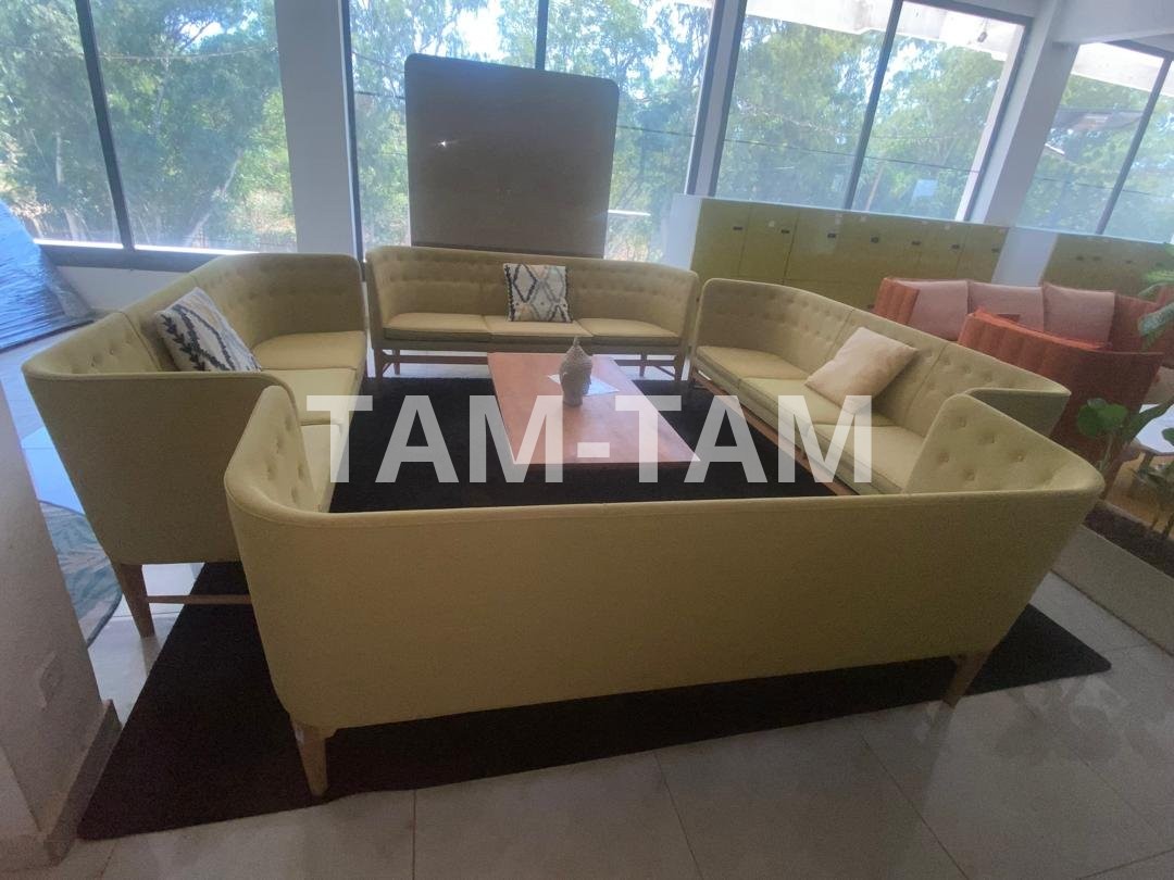 * Configuration : Quatre banquettes modulables disposées en carré pour former un salon fermé, idéal pour les grands espaces ou les zones d'attente.
