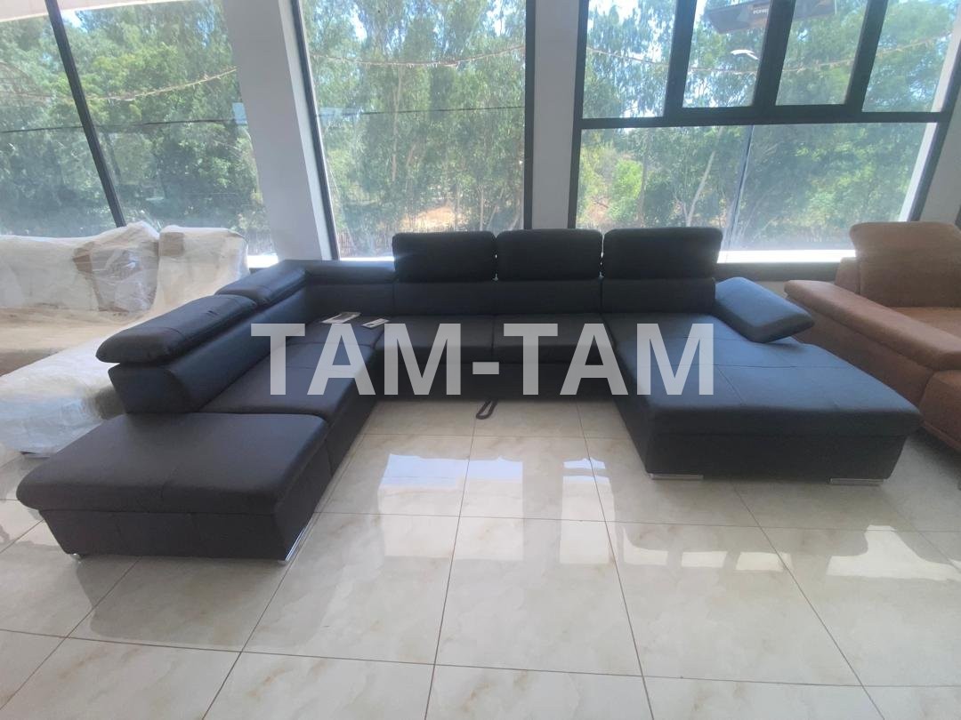 immense canapé en U offrant un espace d'assise exceptionnel, idéal pour les grandes familles ou recevoir de nombreux invités.
