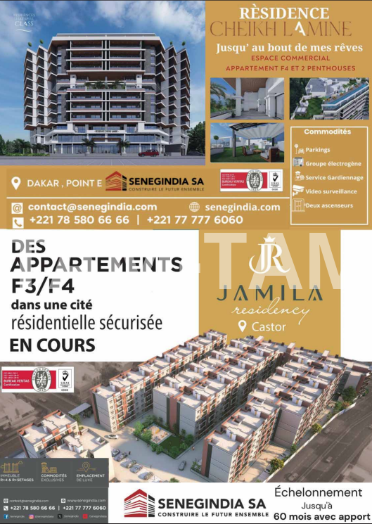 Senegindia, fidèle à sa réputation, continue de redéfinir les standards de l’immobilier à Dakar, en mettant l’accent sur l’innovation, le confort et la qualité de vie. La résidence CHEIKH LAMINE est un témoignage de cet engagement, offrant un espace de vie luxueux et bien pensé, au cœur de l’un des quartiers les plus dynamiques de la capitale.