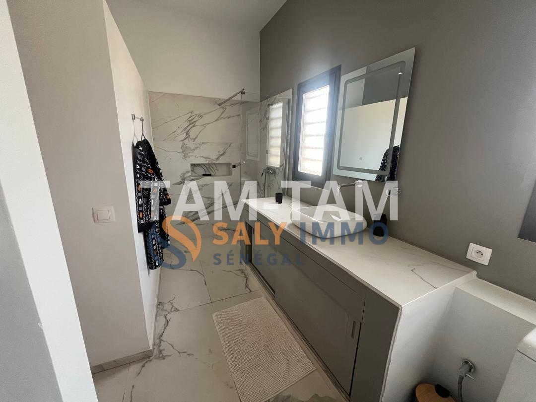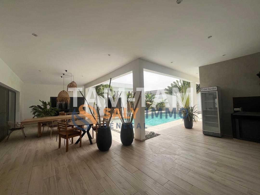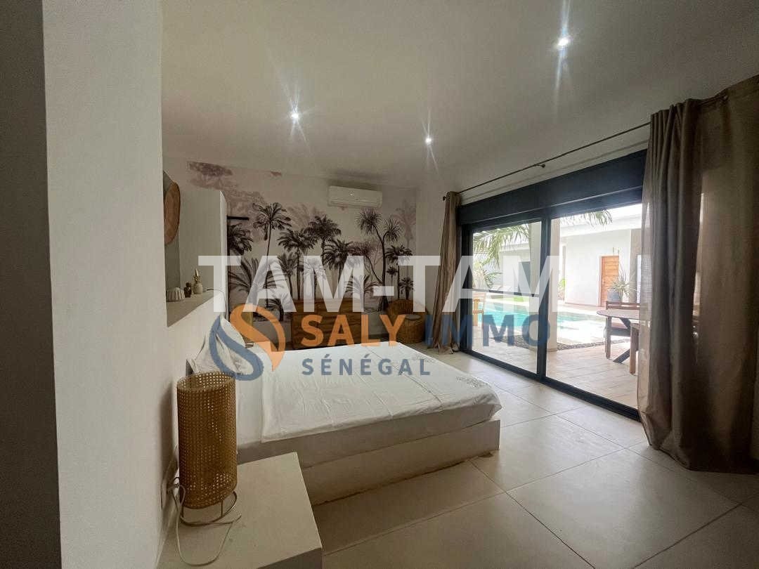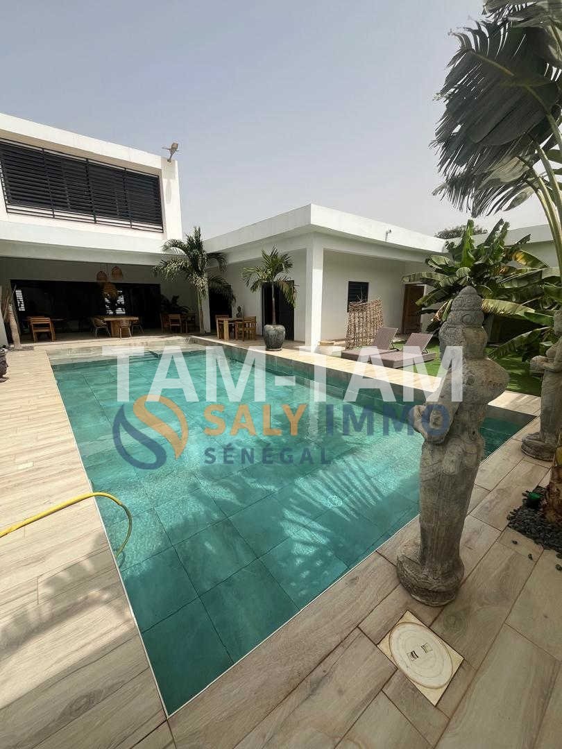 Saly immo vous propose, cette magnifique villa conjugue confort, élégance et fonctionnalité. Dès l'entrée, vous serez séduit par son vaste espace de vie baigné de lumière : un salon-séjour de 90 m² à la décoration intérieure soignée, alliant modernité et chaleur. La cuisine ouverte, entièrement équipée, prolonge cet espace convivial, parfait pour recevoir famille et amis. La villa offre 4 chambres spacieuses, dont une suite parentale, pensées pour le bien-être et la tranquillité de chacun. Chaque pièce a été aménagée avec goût, mettant en valeur des matériaux de qualité et une ambiance harmonieuse. À l'extérieur, le charme opère tout autant : un jardin simple et naturel, facile d'entretien, entoure un agréable espace de détente + 2 toilettes visiteur. Vous profiterez d’un superbe pool house avec abri piscine, idéal pour les journées d'été ou les soirées en toute intimité. Un lieu de vie rare, qui marie esthétique, confort et sérénité, dans un cadre résidentiel privilégié.