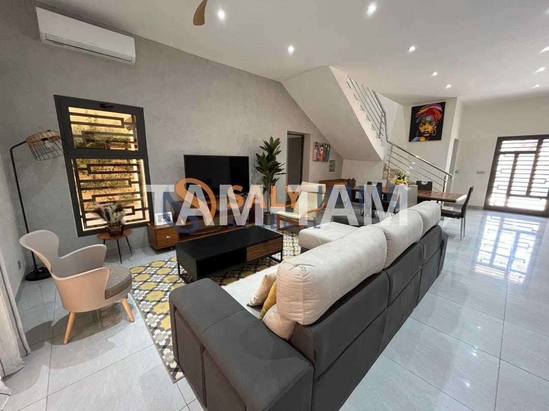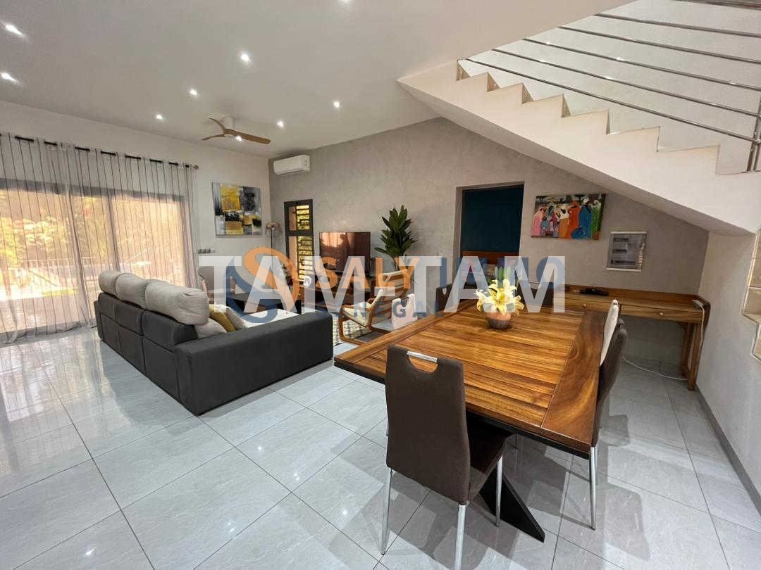 Au cœur d’un quartier résidentiel recherché de Ngaparou, cette villa contemporaine R+1 impose d’emblée une sensation d’équilibre : des volumes généreux, une lumière naturelle omniprésente et une localisation pensée pour la vraie vie. À 350 m de la route principale et 900 m de la mer, tout est à portée… sans renoncer au calme.
