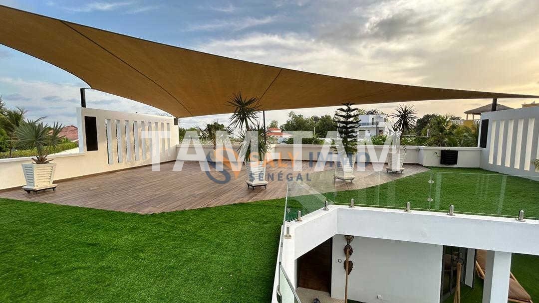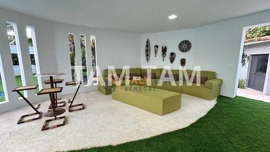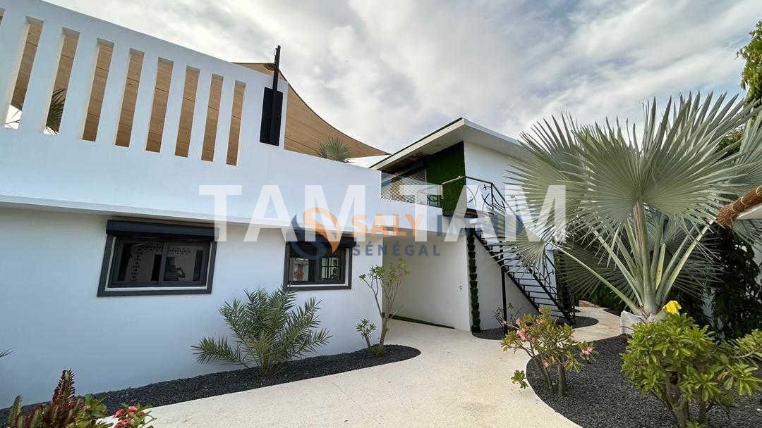 Saly Immo Sénégal vous propose de découvrir cette villa contemporaine unique nichée au cœur de Warang, à seulement 350 mètres de la mer et à proximité immédiate de la route principale. Édifiée sur un terrain paysager de 1 200 m², elle offre 480 m² habitables alliant confort, modernité et raffinement.