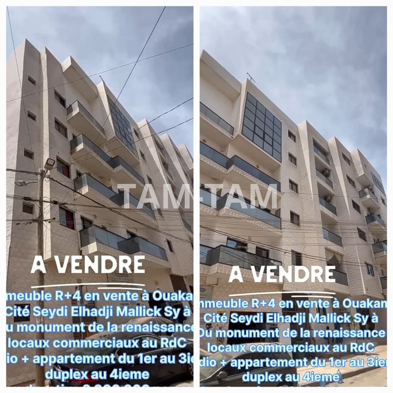 Immeuble à vendre à OUAKAM Cité EL HADJ MALICK SY non loin du monument de la renaissance, R+5, commerces au RDC, appartements du 1er au 3éme, salon 2 chambres et salon une chambre, 4éme et 5éme un duplex avec 3 chambres. Titre Foncier. NOUS CONSULTER