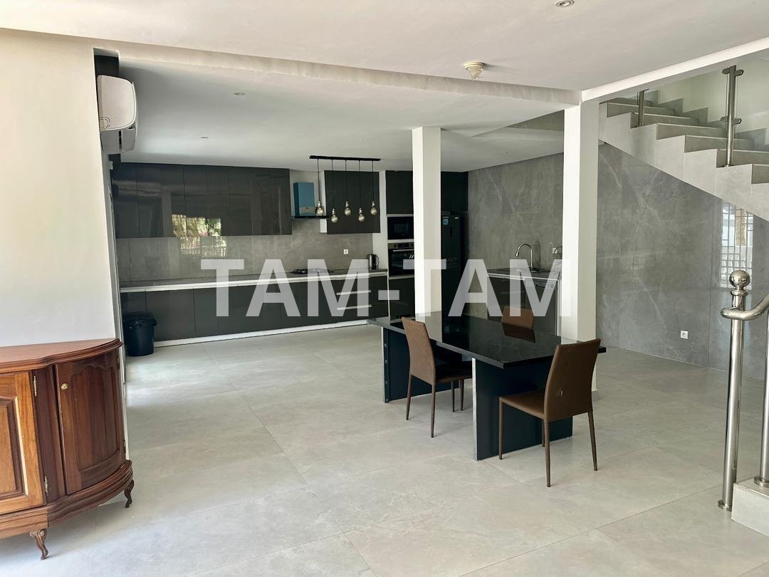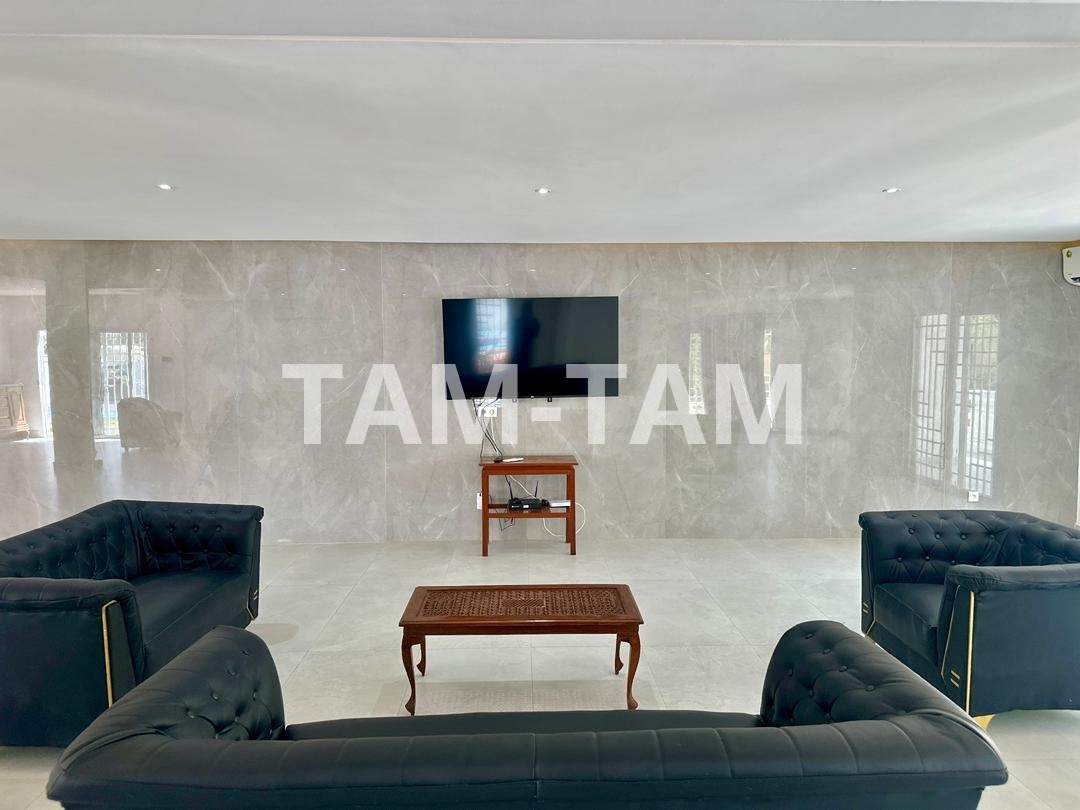 - Grand salon climatisé avec cuisine équipée