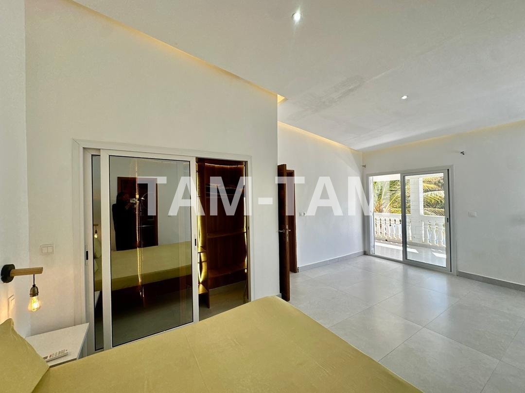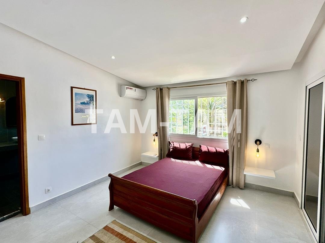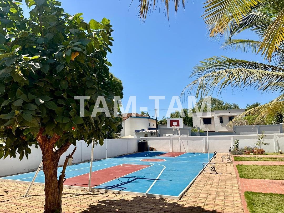 Superbe villa de 1 200 m² dont 300 m² habitables, située à seulement 50 mètres de la plage de Somone, idéale pour un séjour résidentiel longue durée.