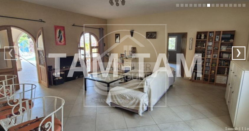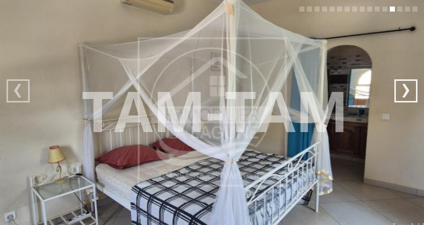 Quatre chambres en suite dont 3 avec un accès indépendant, beau salon/séjour, cuisine équipée, piscine de 44 m², très belle terrasse, garage et parking . Terrain entièrement clôturé, planté de palmiers et bougainvilliers, terrain de pétanque. Papiers administratifs complets.