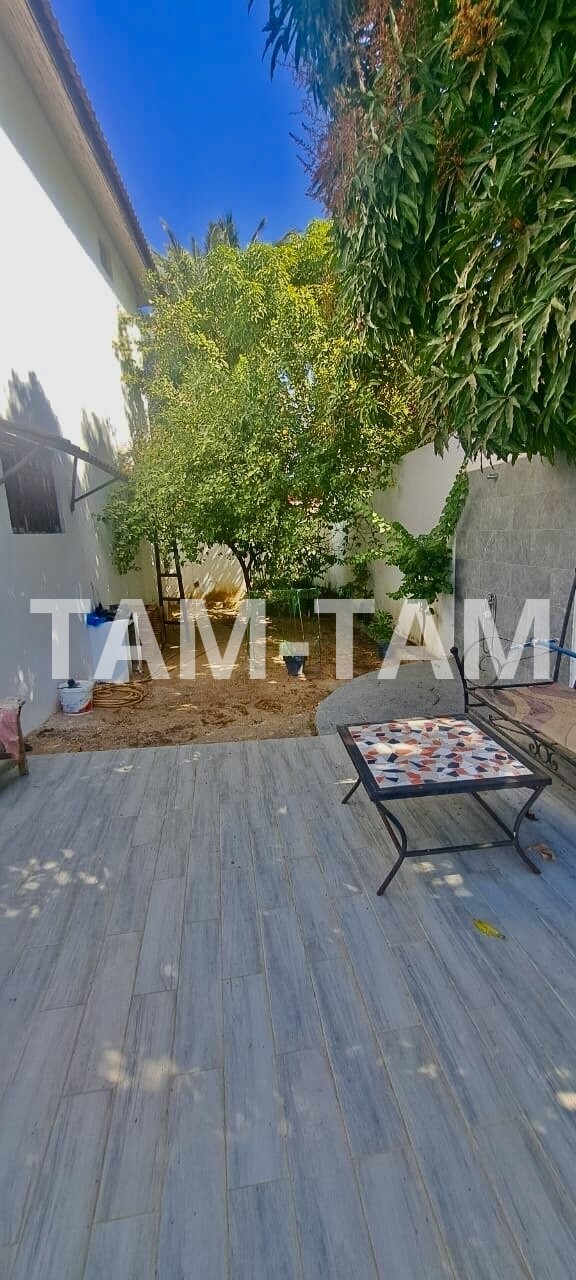 Étage : deux chambres supplémentaires, dont une climatisée, une salle d’eau sur le palier, ainsi qu’une terrasse privative offrant un point de vue agréable et une brise marine rafraîchissante.