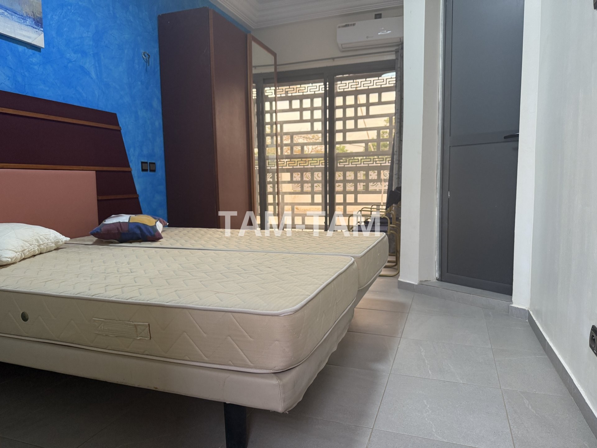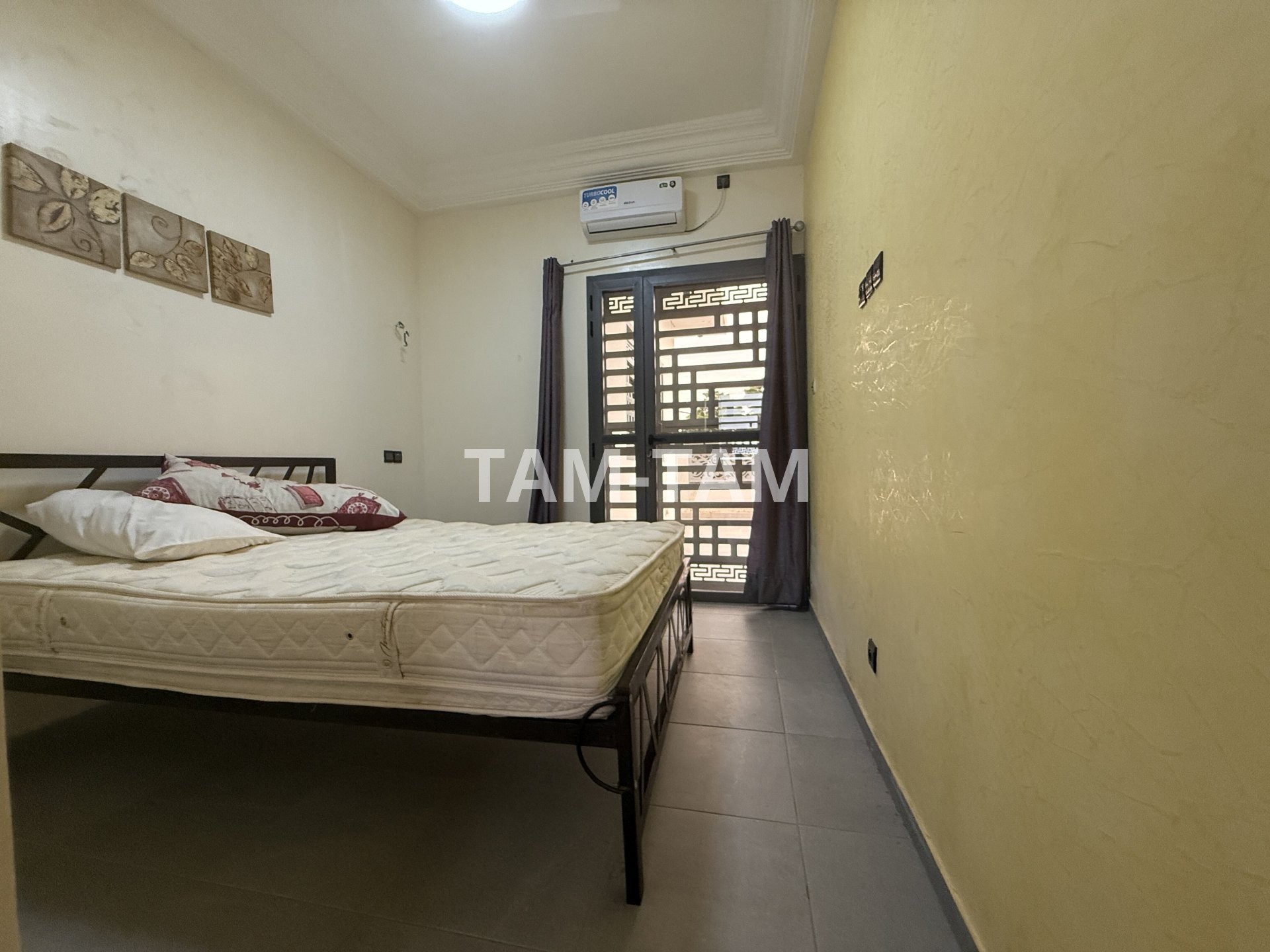 Rez-de-chaussée : Séjour avec cuisine américaine aménagée et équipée, Chambre avec accès extérieur, salle d'eau et WC