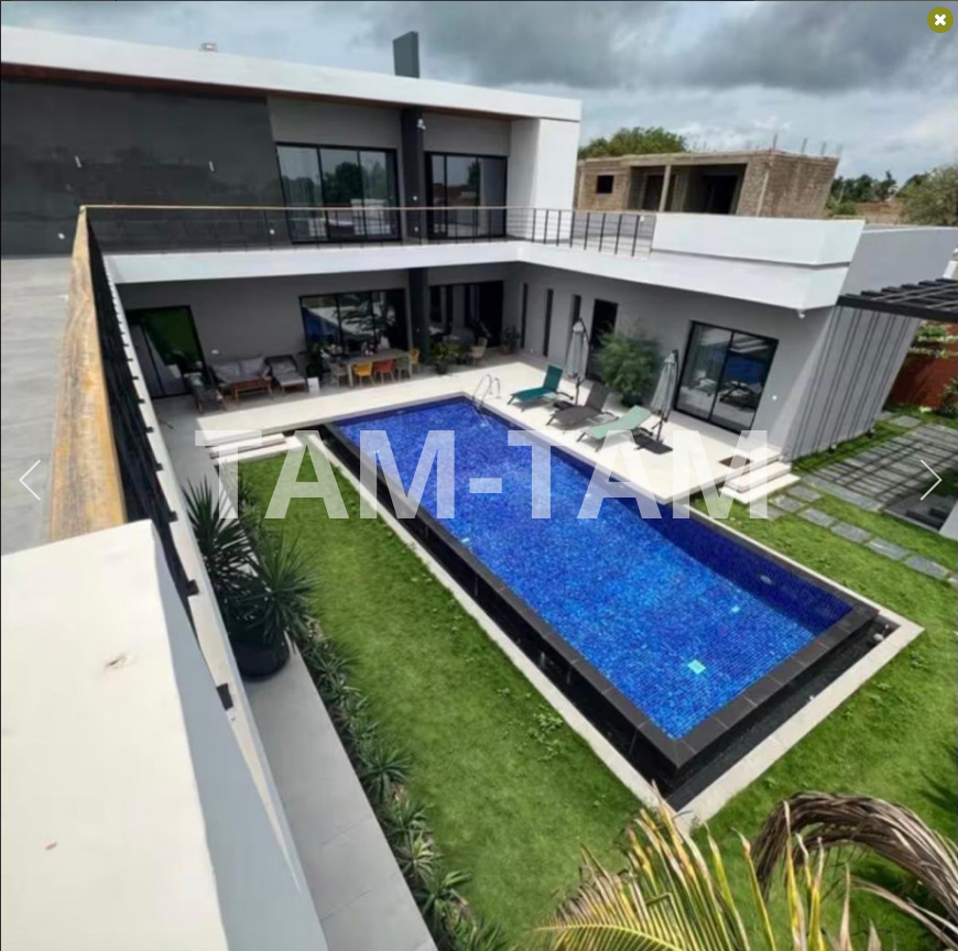 Sur un terrain arboré de 1067 m² Sélection Sénégal vous présente cette très belle villa d'architecte de 450 m² habitables se composant de 6 chambres dont une suite parentale de 63 m² avec sa salle de bain et son grand dressing donnant sur une vaste terrasse de 241 m² . Au rez de chaussée , 4 très grandes chambres lumineuses , avec dressing et salle d'eau , un séjour de 64 m² , une cuisine équipée avec ilot central , une SALLE DE CINEMA . L'ensemble bénéficie de prestations et de finitions haut de gamme ( faux plafonds, choix des matériaux ...) L'ameublement est de grande qualité et la décoration de très bon gout . A l' extérieur vous trouverez une grande piscine solaire à débordement de 62 m2 des dépendances dont un local gardien aménagé , un batiment de sevice avec une chambre et sa salle d'eau ( pour le personnel ) ,une cuisine extérieure équipée , Autres équipements : Forage et puits , vidéo surveillance
