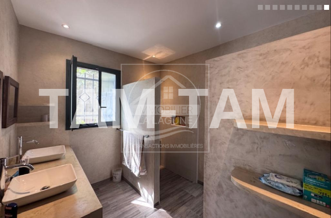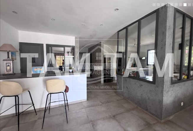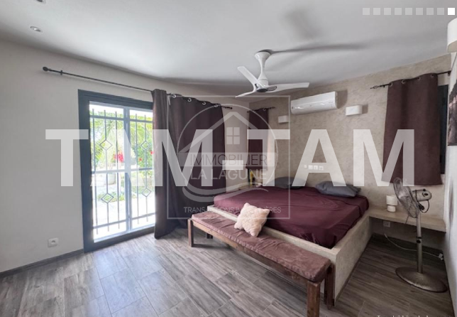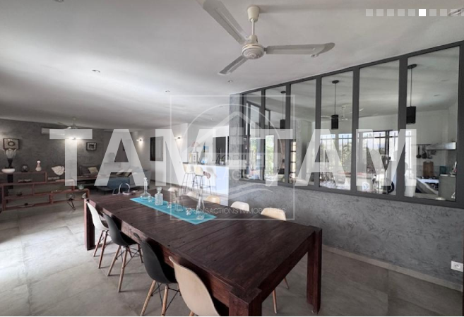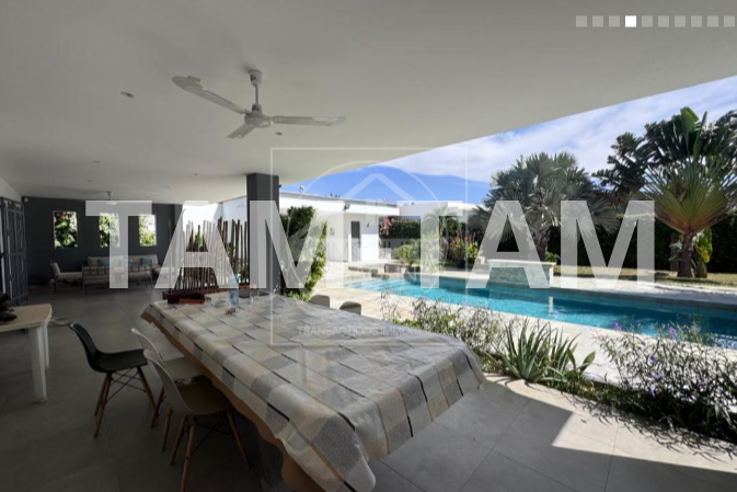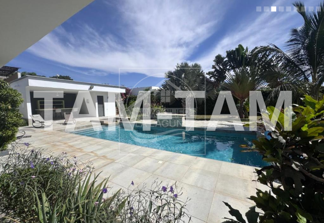 Villa à vendre à Ngaparou. Jolie villa de plain pied sur 200m² habitables, climatisée et fonctionnelle, située à proximité immédiate des commerces et 800m de la mer, dans un cadre privilégié alliant confort, espace et tranquillité. Elle offre un beau séjour salon, une cuisine américaine avec verrière, 3 chambres avec salles d'eau et placards ou dressing, une belle terrasse couverte de 65m2 et un pool house avec bar donnant sur sa piscine chauffée entièrement solaire et son jardin arboré et en partie gazonné. Un garage fermé avec une grande cours. L'ensemble sur un magnifique terrain de 2400m2 dont une partie arboré de manguiers. Possibilité d'extension ou de construction supplémentaire.