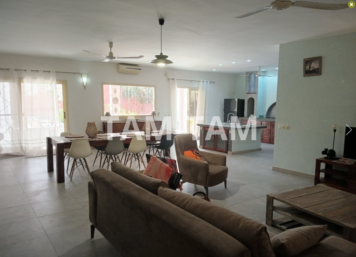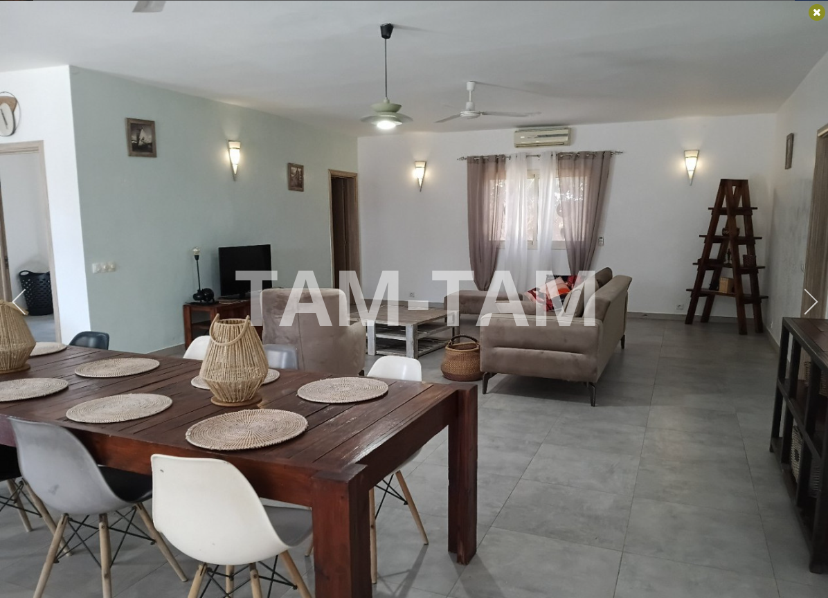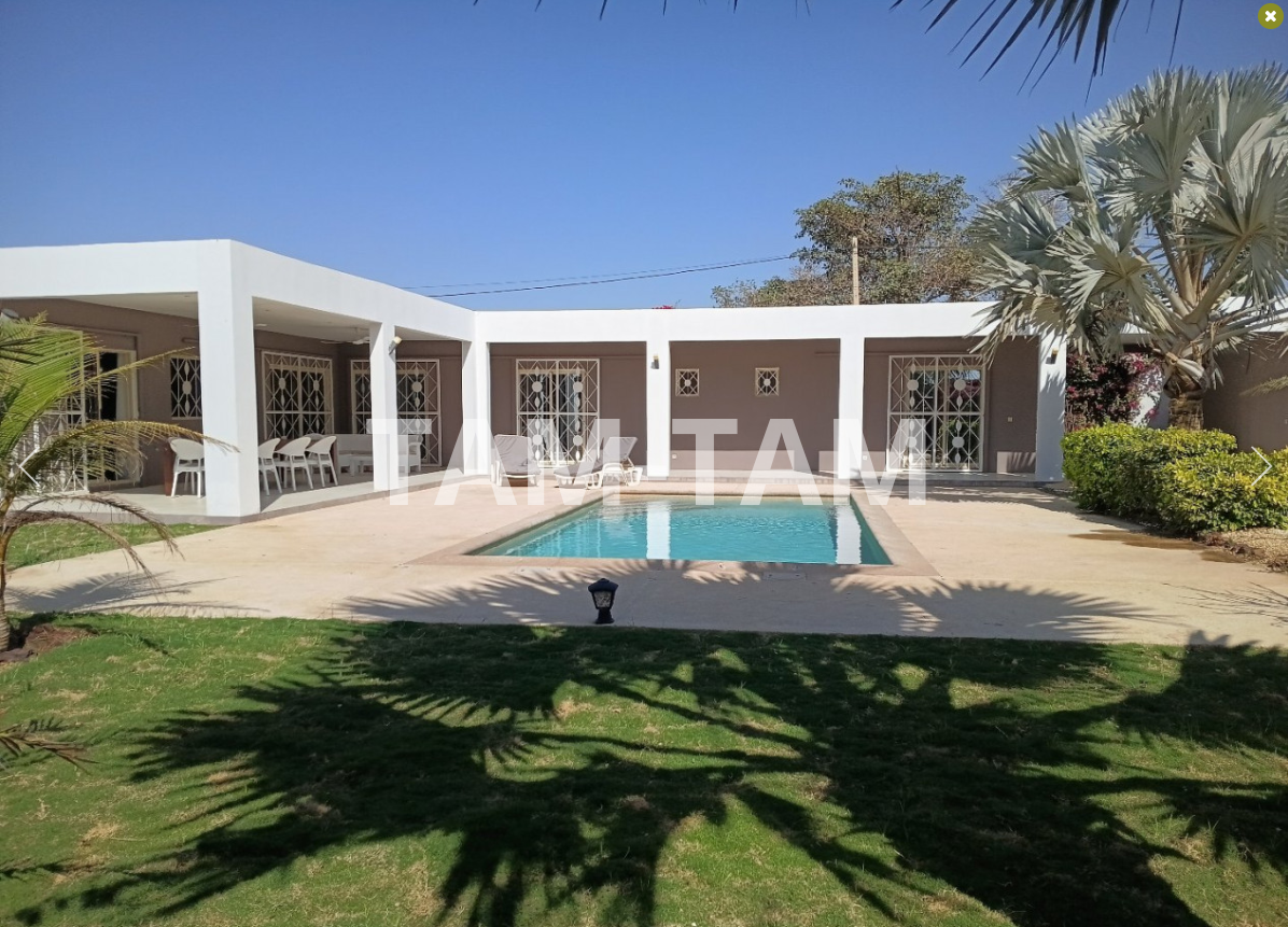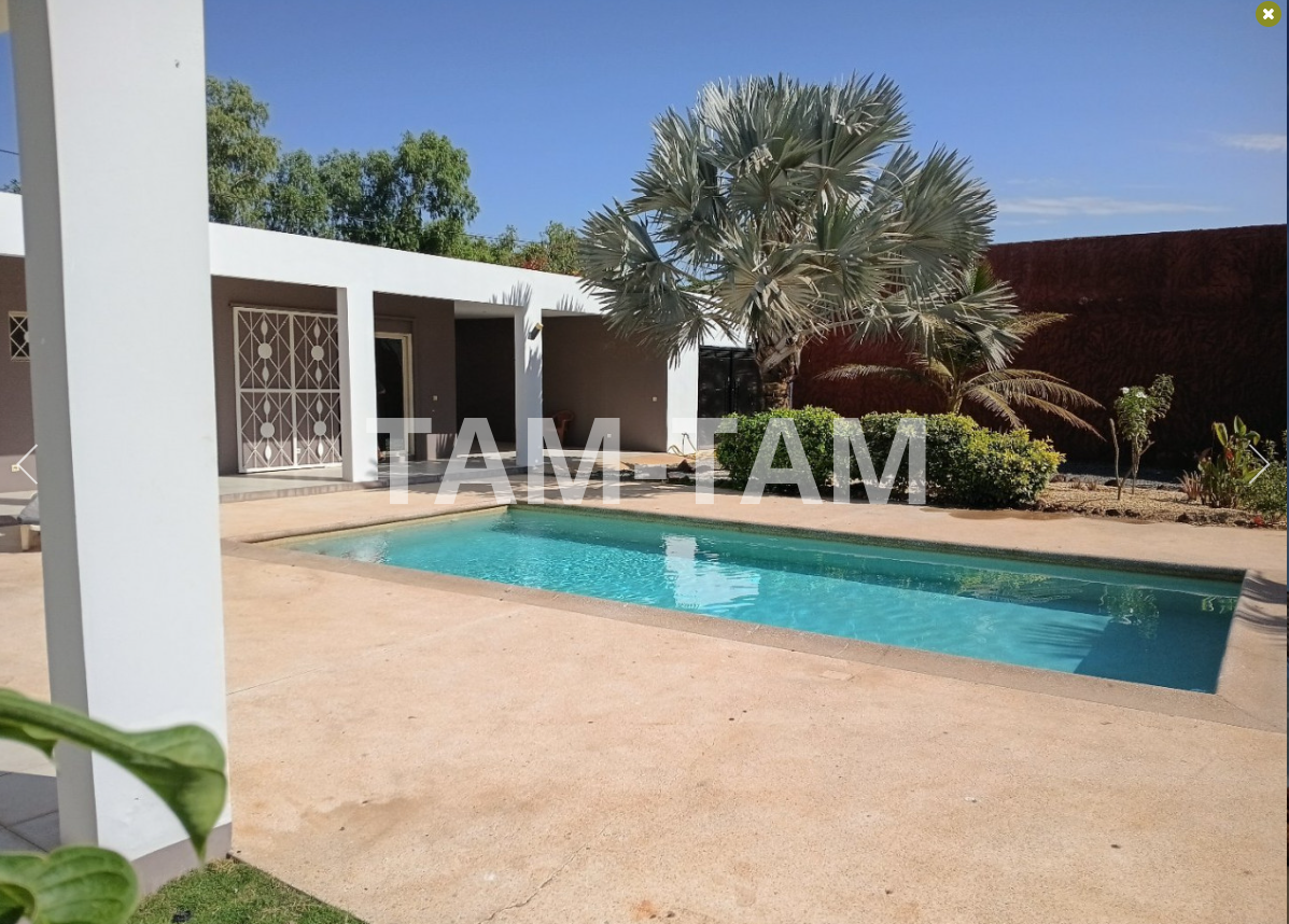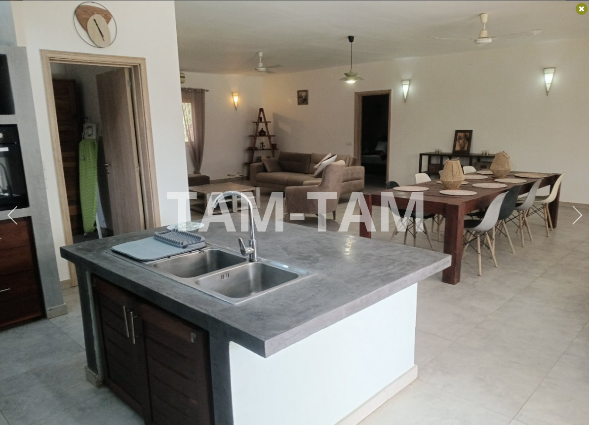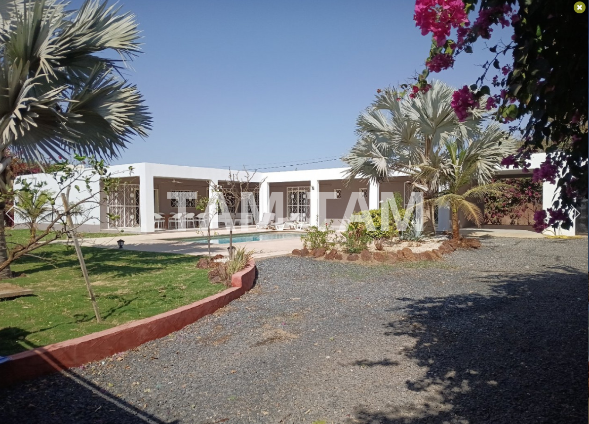 Tout proche du rond point de Ngaparou et du centre ville , à 100 m de la route de DAKAR et face l'école bilingue EBA villa de 205 m² habitables comprenant une très grande pièce a vivre, avec salon ,séjour , salle à manger . 4 chambres dont 1 indépendante avec chacune sa salle d'eau , une cuisine équipée avec ilot central , une 2ème cuisine indépendante , une buanderie . La villa est entièrement meublée et décorée A l'extérieur sur un grand terrain arboré de 1226 m² , une grannde terrasse aménagée , une piscine à énergie solaire , un grand garage fermé . Batteries / onduleur en cas de coupure , panneaux solaires , forage réseve d'eau , jardin arboré