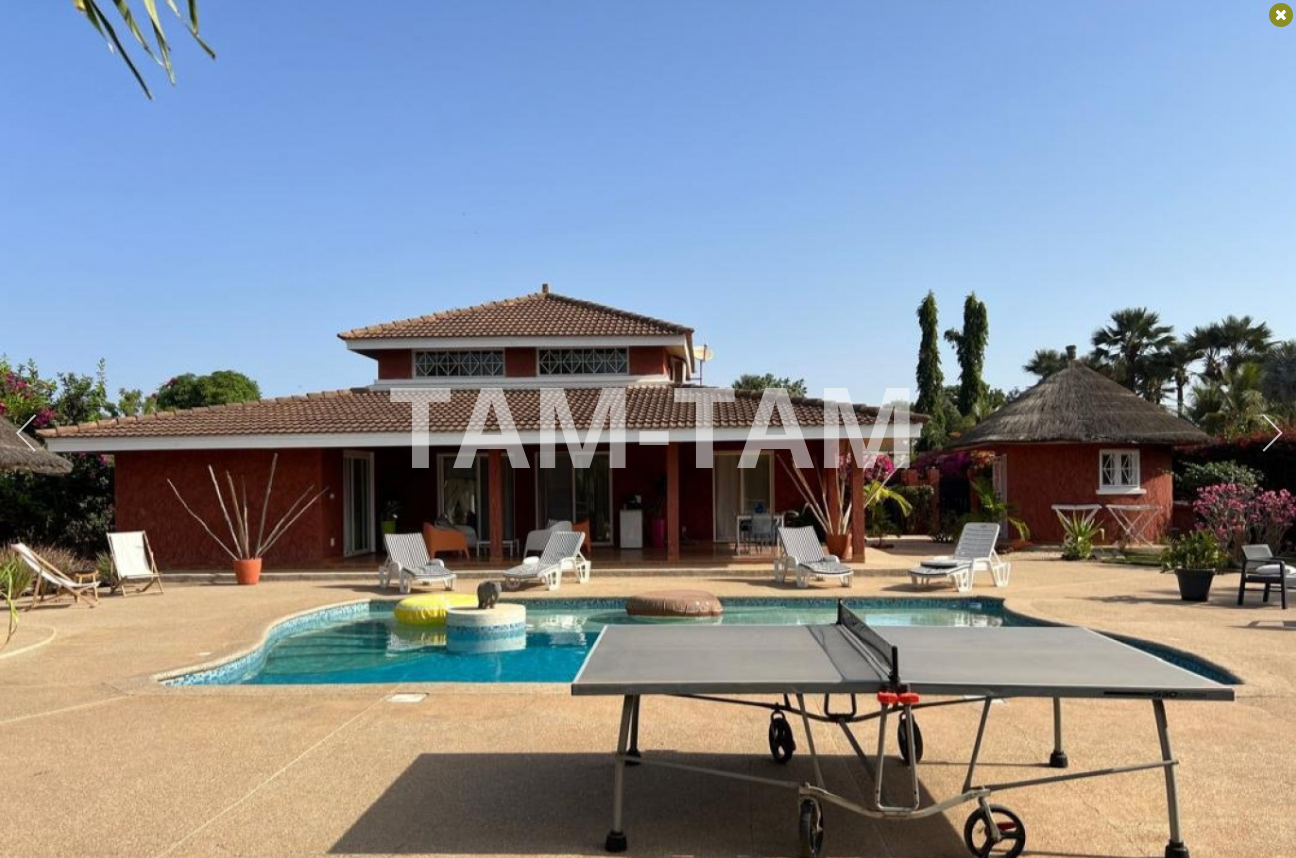 La villa est située dans un grand domaine résidentiel sécurisé, à pieds de l'école française Jacques Prévert à Saly, offrant ainsi, en plus d'un cadre idéal d'habitation, aussi une bonne rentabilité locative.