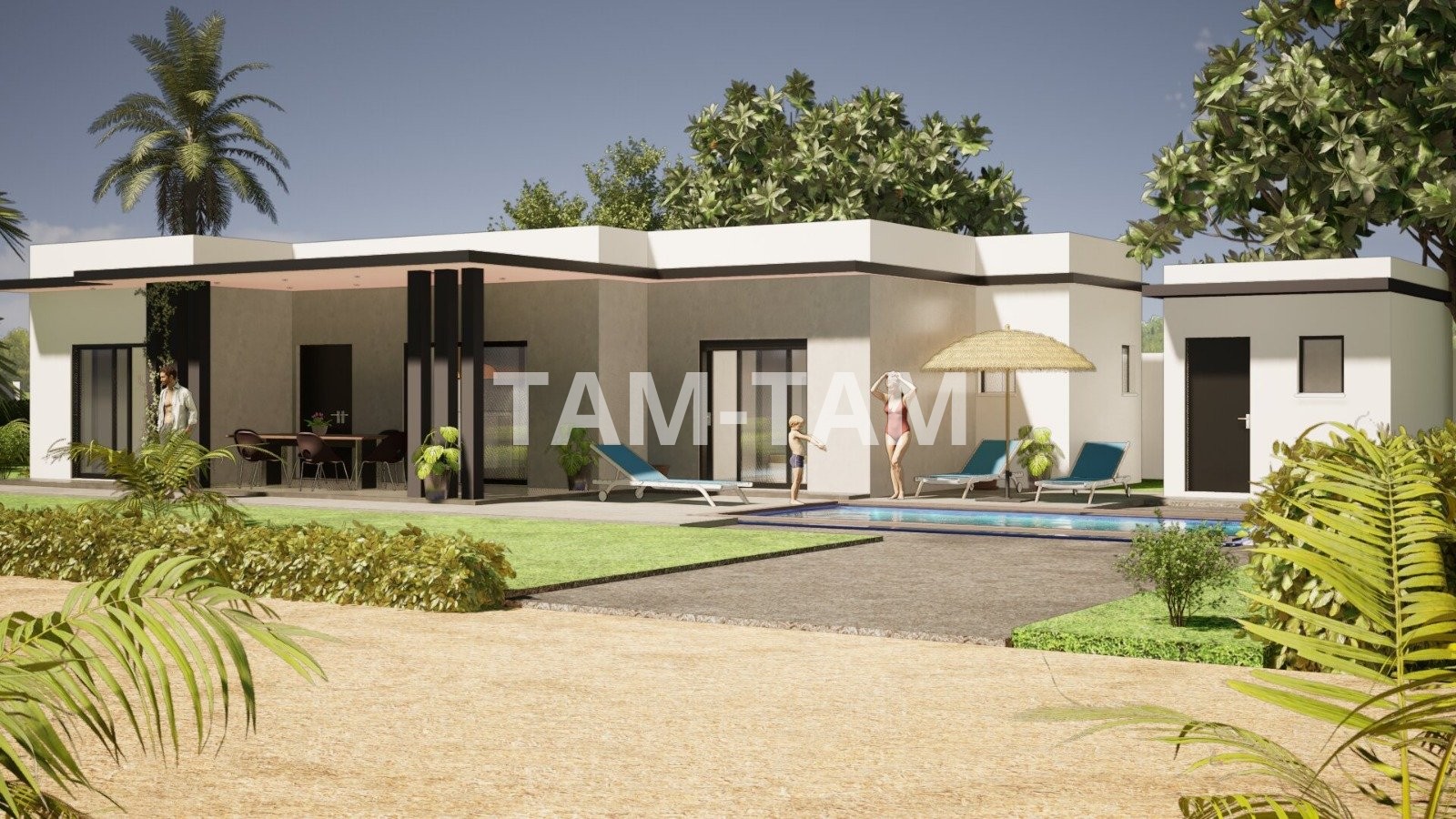 Un style très ouvert avec de grandes baies vitrées donnant directement sur la piscine. C'est le modèle « architectural » par excellence. Une conception en "L" ou en "U" qui crée un véritable patio privé autour de la piscine. Idéal pour ceux qui recherchent une intimité totale (sans vis-à-vis). Une esthétique plus exotique et luxueuse, souvent avec des matériaux plus nobles et des volumes plus importants.
