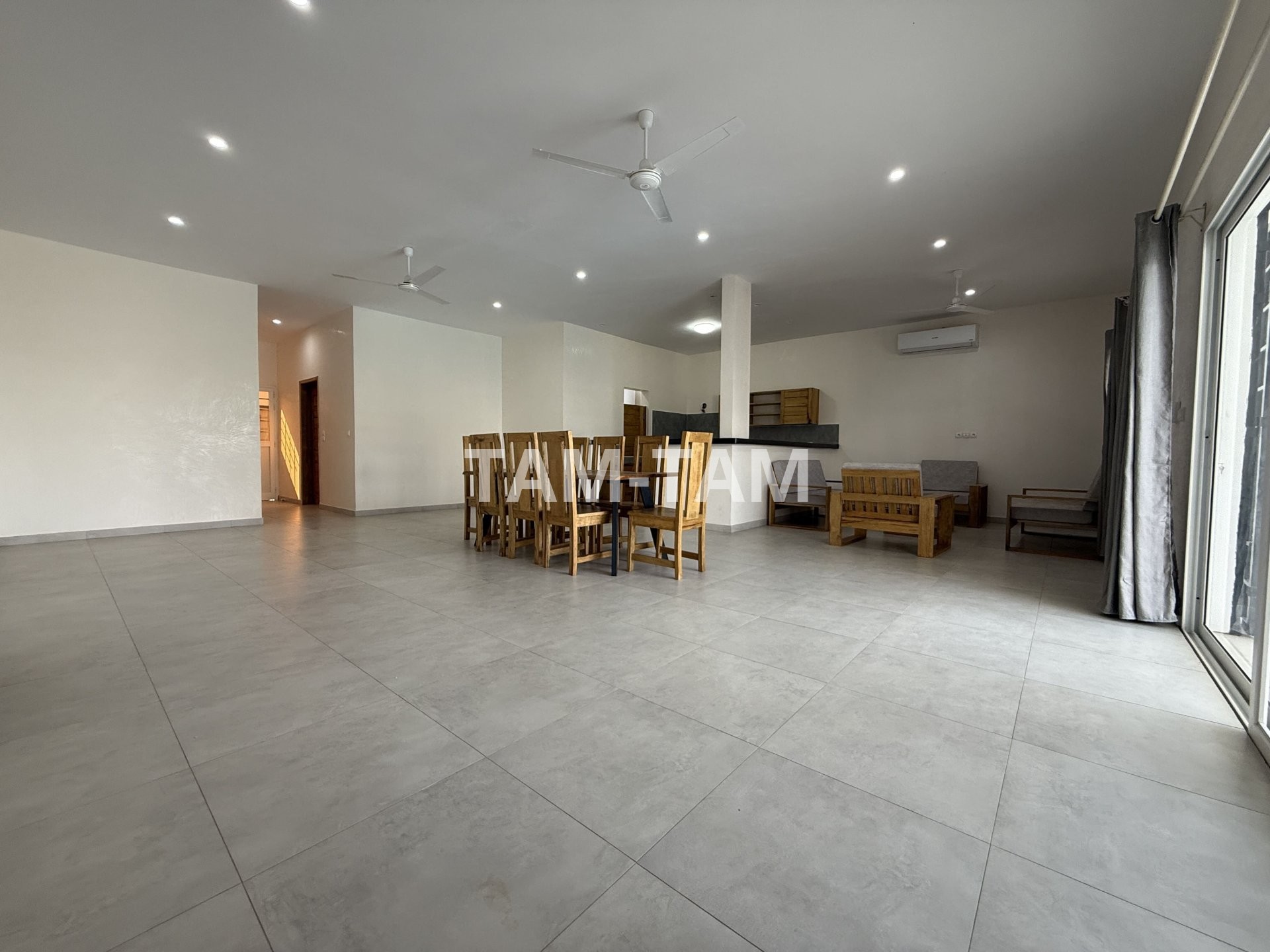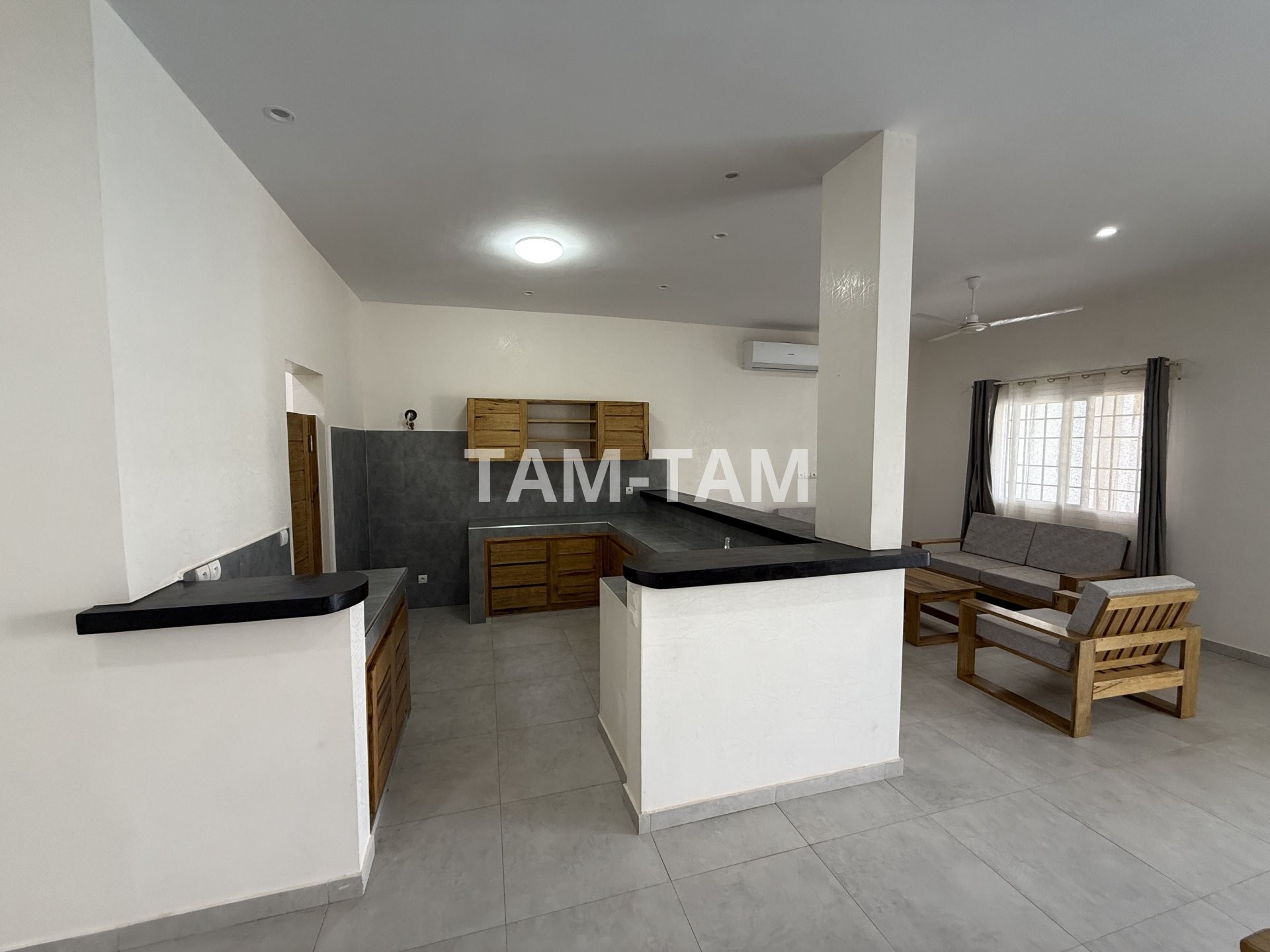 Vaste séjour lumineux avec cuisine américaine aménagée et buanderie
